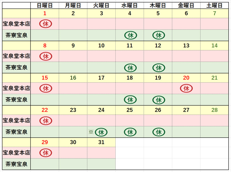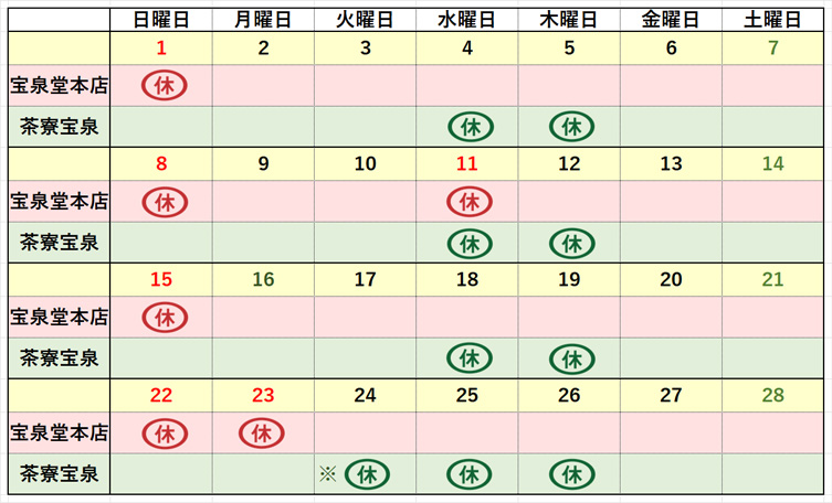 ※3月24日(火)は茶寮宝泉を臨時休業日とさせていただきます。